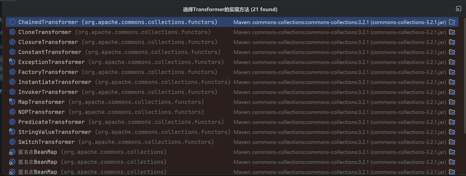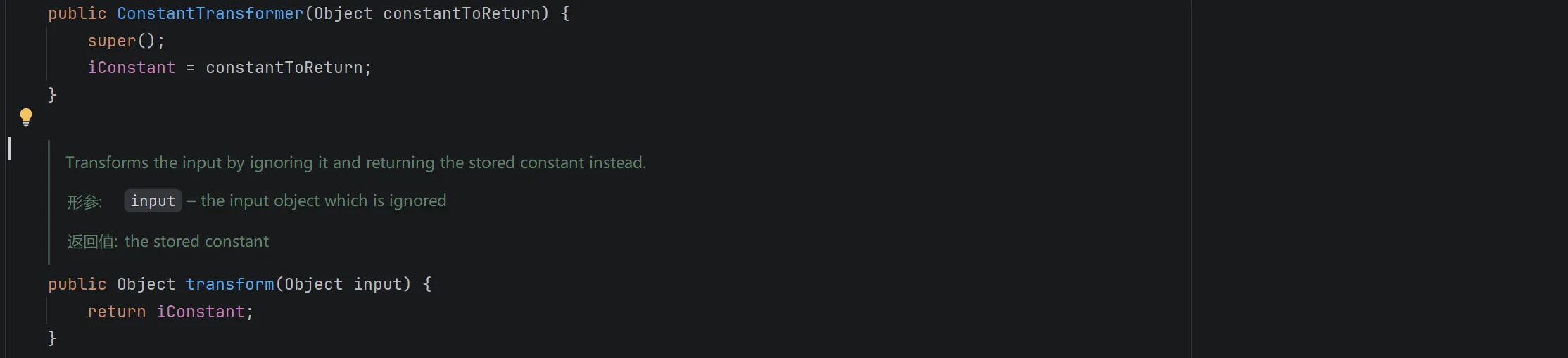所以将 ConstantTransformer 加到 ChainedTransformer 链条的开头,就可以控制迭代的初始对象了