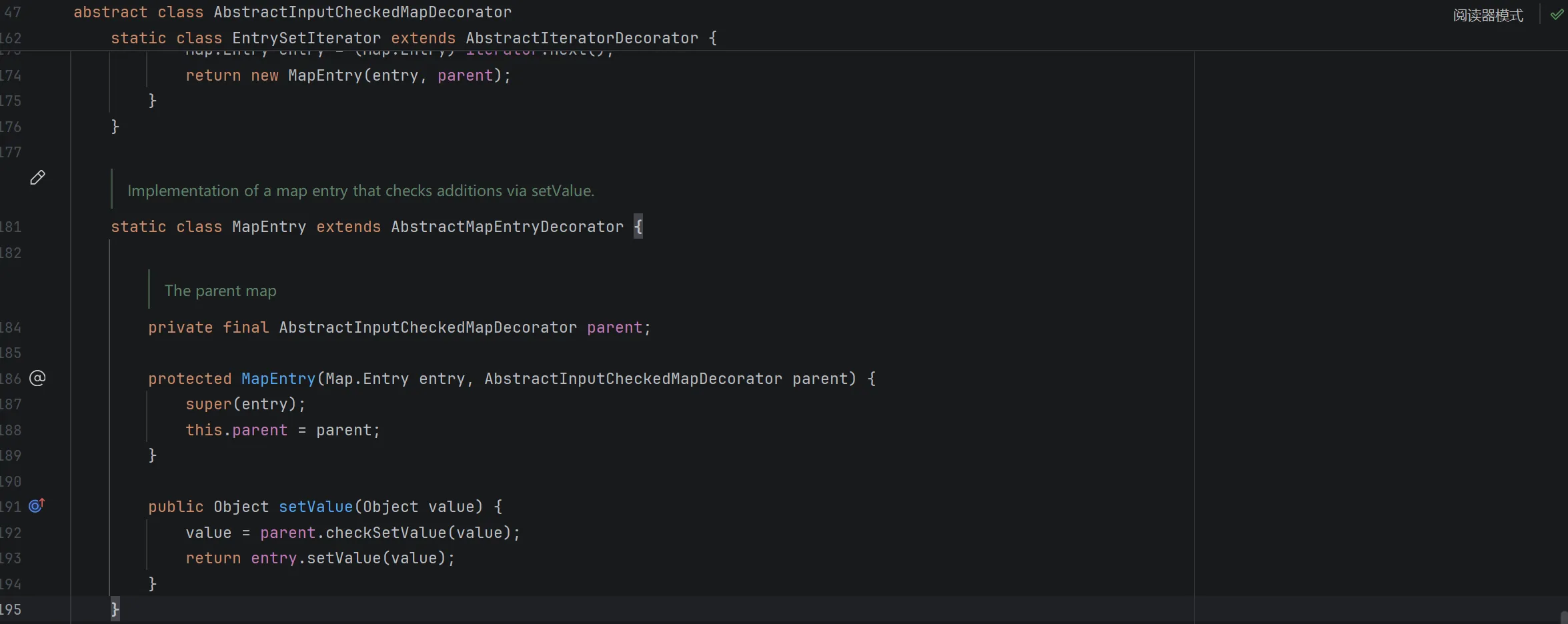 AbstractInputCheckedMapDecorator 是一个抽象类(装饰器),是 TransformMap 的父类
